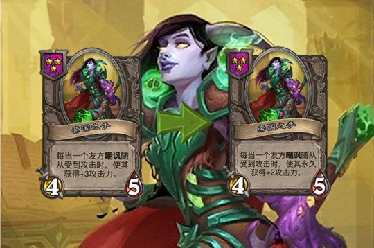 从整体环境来看,暗月奖品的下线让整体环境大幅降速。一方面是因为没了前期的暗月奖品,快速跳本无法保证强度。另一方面是因为没了后期的暗月奖品,快速跳本的意义就只剩下了手动找高星随从,不如稳扎稳打。与此同时,三连机制的改动让整活基本成为了不可能。