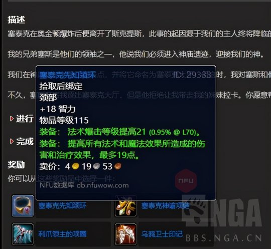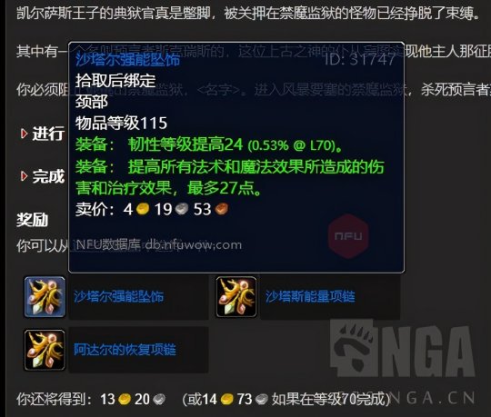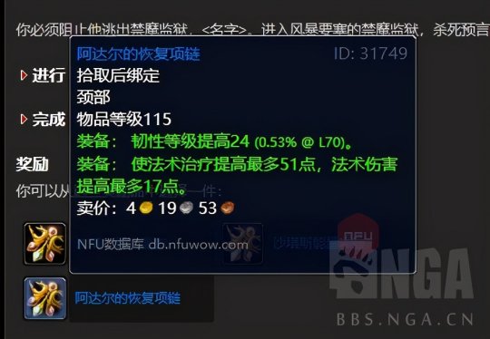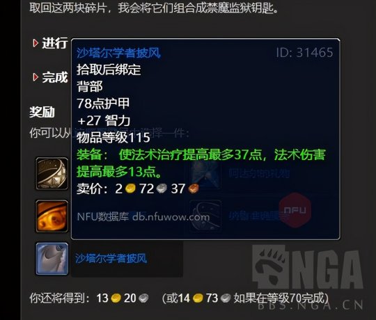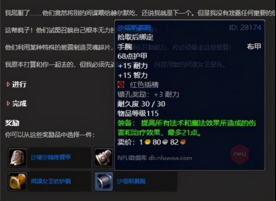 首先是要去做禁魔监狱的门任务,因为卡拉赞门任务里面是必须打禁魔监狱的,而禁魔监狱要有钥匙。 任务的起点是52区旅店里面占星者或者奥尔多的npc:帮助星界财团任务。具体步骤跟着任务线走就行,我这里贴出来能拿到的装备。