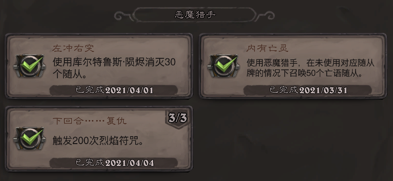 《炉石传说》恶魔猎手下回合复仇成就攻略