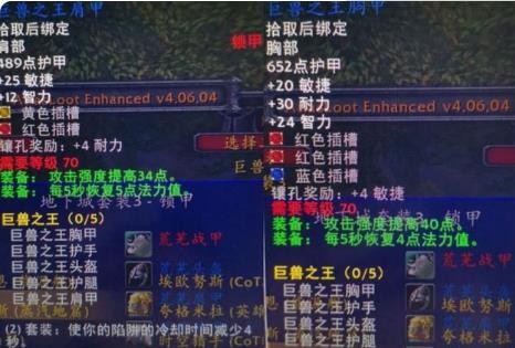 T4套装的特效十分差劲,单件属性又缺命中和暴击,所以目前大多数装备搭配方案,都没有以T4套为主的。一直到T5团本开放前,猎人最好的配装方案有这么几种:4T3加4D3,4D3加制皮套以及4D3配团本散件。可以看到无论怎样,4件巨兽之王套装必不可少,套装效果对兽王猎的加成太香了,属性和插槽奖励也非常不错。相比之下T4套装以及卡拉赞的锁甲散件就非常拉胯,不推荐去刷。