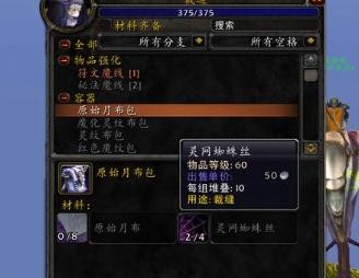 今天我们的主角是灵网蜘蛛丝,这个物资是裁缝制作三件套的必需品,也是制作18格包包和20格包包的必需品,属于第一阵营的刚需物资,所以这个东西在前期肯定是非常抢手的东西。