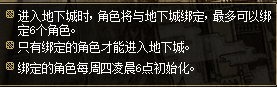 每周最多可以绑定6个角色进入地下城,每周四初始化,6个角色共享1500个硬币上限。