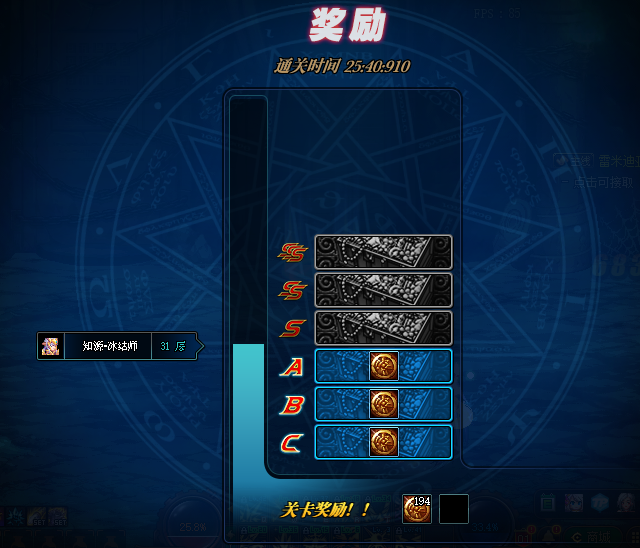 角色死亡/撤退则进行结算,根据通关层次能够获得额外的硬币。