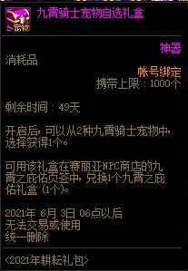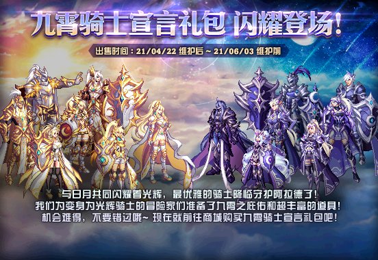 DNF体验服商城上线了DNF五一套,今年的五一礼包是九霄骑士宣言礼包,使用的是日月骑士风格,而且今年的五一宠物首次加入了奶属性,下面就给大家带来DNF2021年九霄骑士宣言礼包介绍。