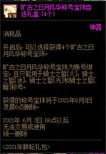 每个礼包内附赠10个日月争辉宝珠,附魔后随机1~2级技能,而礼盒内选择的旷古宝珠则为必定2级技能。