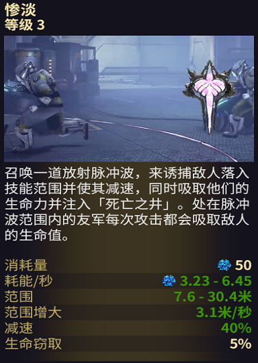 脉冲会迅速扩散并且对范围内敌人施加减速效果。