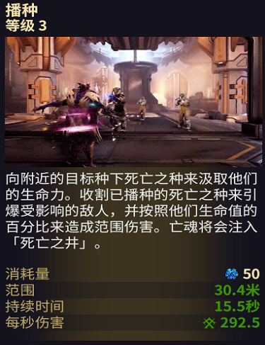 每个被播种击杀的敌人将会增至右下角显赫计量条(死亡之井)。