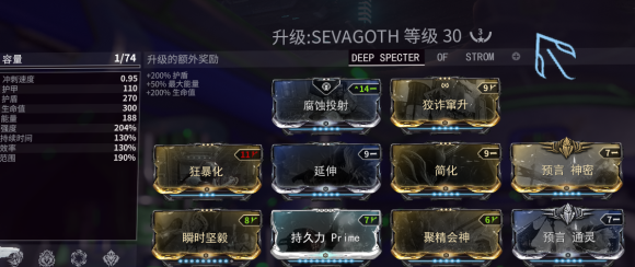 星际战甲中sevagoth幽影的玩法是:确保21能够流畅使用且有一定的真正意义上的输出,持续效率也可以加一点减少123技能点耗蓝量操作更流畅,川流倒是没有太大的必要带,因为3技能其实没必要一直开着。