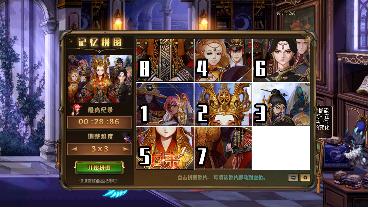DNF记忆拼图速通方法先还原第一横排(123),再还原第一竖排(147),因为左上角会给原图,实际上拼起来就不难,这一个拼图知道玩法技巧后,30秒应该是简简单单快速搞定了。