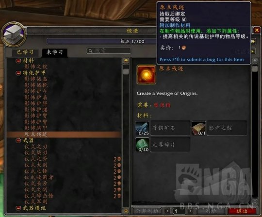 等级 1 (装等 190) - 1,250 灵魂灰烬