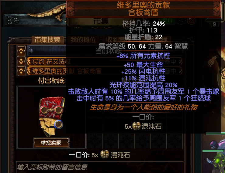 9、a:(维盾版)戒指:潜能之戒,选择护盾+闪电抗+火焰抗的,空一后缀的更好,可以工艺耐力球下限。