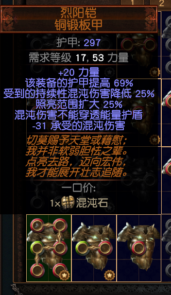 4、衣服:烈阳铠,俗称小CI,混沌伤害不能穿透能量护盾(洗出2绿4红)