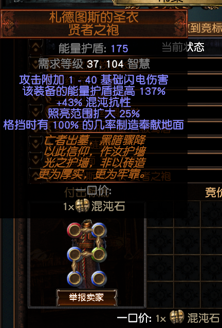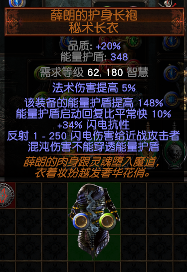 进阶装:薛朗的护身长袍,俗称大CI,提供了高护盾,现在也挺贵,后续搬砖拿下