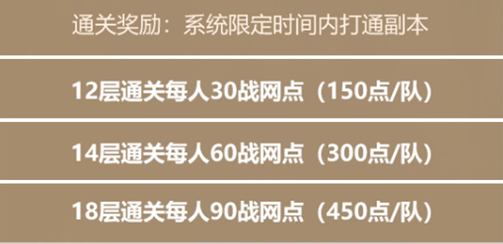 在第4赛季中,只要你和你的队伍限时通过12层,就能拿到“低保”奖励,保证不会空手而归。