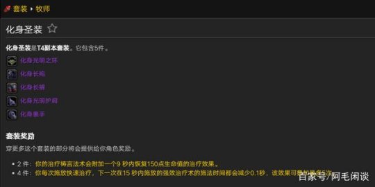 牧师在TBC套装分为两套,圣装为治疗属性(神圣/戒律),法衣(暗影),牧师在TBC的主要副本定位依旧是治疗,不过暗牧输出能力有所加强,过去正式服我们公会会长的选择是一样一个3个牧师3个天赋,暗牧给术士组,戒律牧辅助保T驱散,神牧团刷。