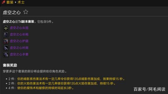 术士在TBC也获得了增强,输出能力提升,有了减仇恨技能,似乎是摆脱了工具人的身份,实际上做糖,拉人,上诅咒术士依旧还是这些老活,逃不掉,还好集合石能用了可以分担不少片的压力,T4套装对术士加成还不错,触发的效果顶一件饰品了,很给力,而且术士TBC套装美工也都不错,值得拥有。
