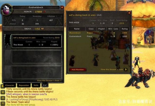 TBC版本中的竞技场队伍并没有人数限制,比如3V3的战队可以存在5个角色,当年的玩家可以参与高匹配的队伍快速提升自己的分数,不过到了TBC怀旧服中,这种方式就无法使用了。