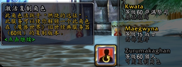 为了满足玩家想要在“燃烧的远征”和《魔兽世界》旧世经典服务器(60级)中使用同一个角色的需要,我们推出了新的可选服务“角色复制”。