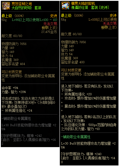 上衣:buff倍率相同,少2点体精和智力;