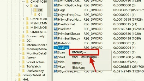 3、下一步,继续鼠标右键点击Scaling并选择修改。