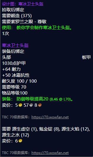 wowtbc怀旧服寒冰卫士头盔配方图纸掉落出处