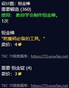 wowtbc怀旧服恒金棒配方图纸掉落出处