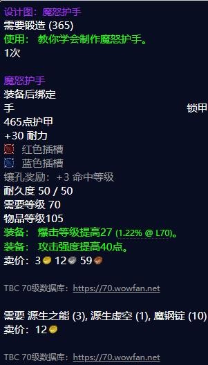 wowtbc怀旧服魔怒护手配方图纸掉落出处