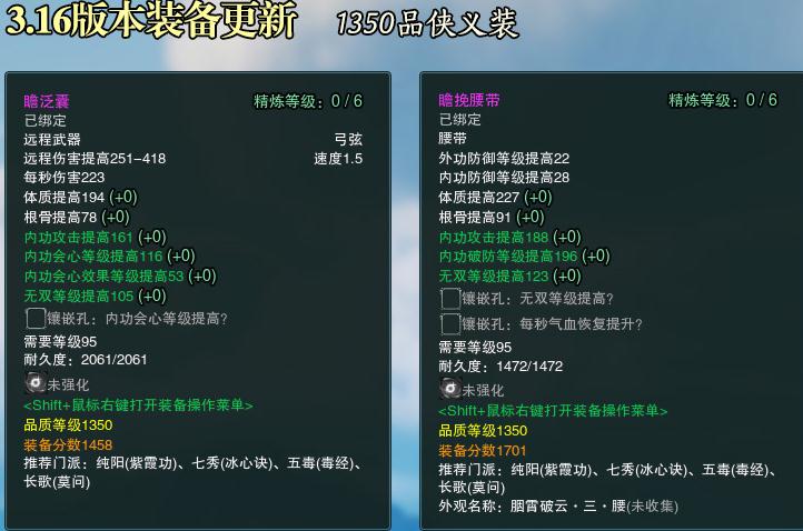 在剑三3.16版本中,官方上线新的装备,其中包括1350品狭义装,小伙伴们是不是非常期待呢?那么这一次版本更新1350品狭义装有哪些呢?小编下面就为大家带来剑网三3.16版本1350品狭义装更新汇总。