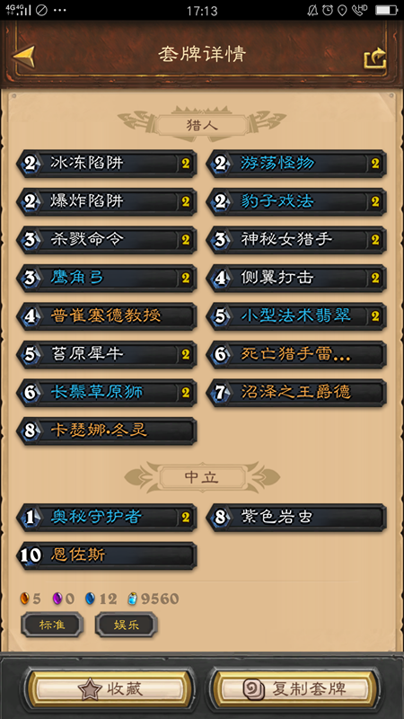 前期当作奥秘猎来打,低费随从可以全留,中期就当作中速猎来打,主要是抢节奏,后期则依靠恩佐斯德返场和DK的无限资源来获得比赛的胜利。