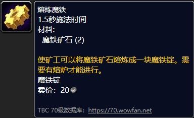 游戏《魔兽世界》中,这个物品有1.5秒施法时间。那么熔炼魔铁哪里学?还是有很多玩家并不了解,各位亲爱小伙伴,让我们一起来看tbc怀旧服版本熔炼魔铁学习地点。