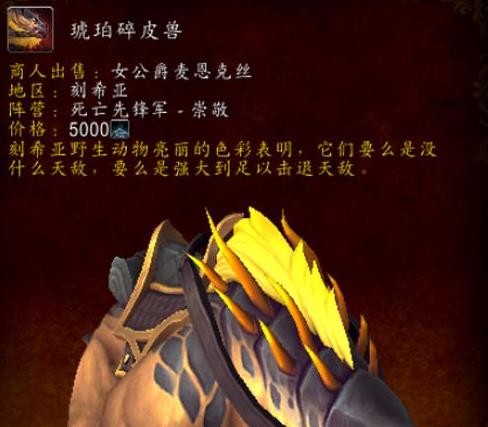 刻希亚新增了一个“死亡先锋军”阵营声望,看名字就知道是伯瓦尔带领的队伍,声望崇敬和崇拜分别可以在声望商人那里购买坐骑:琥珀碎皮兽和翔天刀翼兽。妥妥的换皮狗熊和驱风者,造型也只能用“奇异”来形容。