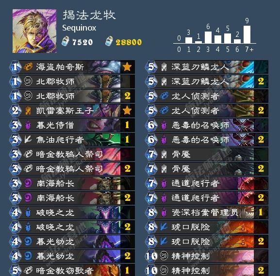 揭法龙牧就是利用龙卡的大身材以及控场能力,在6费的时候利用恶毒召唤师找出强力随从,获得很大的优势。