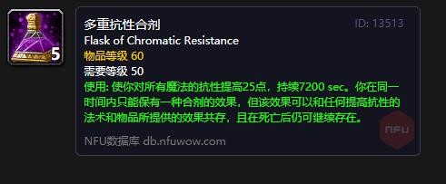 wow多重抗性合剂作用一览