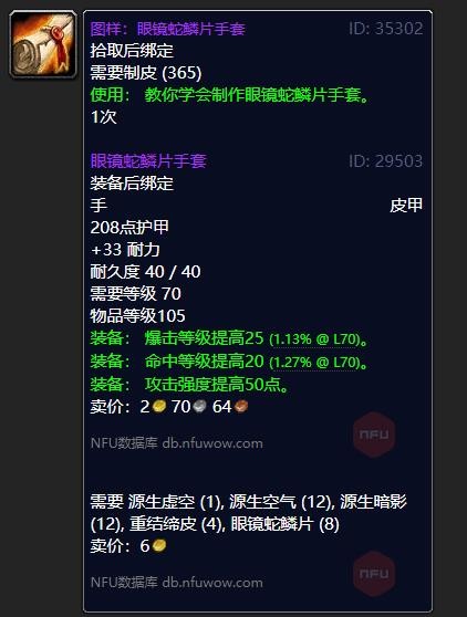 《魔兽世界》眼镜蛇鳞片手套图纸哪里出