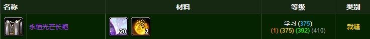 魔兽世界永恒光芒长袍材料需要什么?