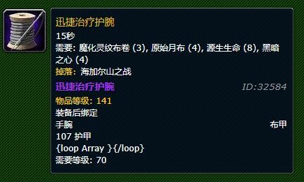 游戏《魔兽世界》中,这个物品等级是141级。那么迅捷治疗护腕需要什么材料呢?还是有很多玩家并不了解,各位亲爱小伙伴,让我们一起来看迅捷治疗护腕需要材料一览。