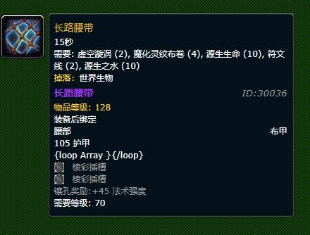 游戏《魔兽世界》中,这个物品等级是128级。那么长路腰带需要什么材料呢?还是有很多玩家并不了解,各位亲爱小伙伴,让我们一起来看长路腰带需要材料介绍吧。
