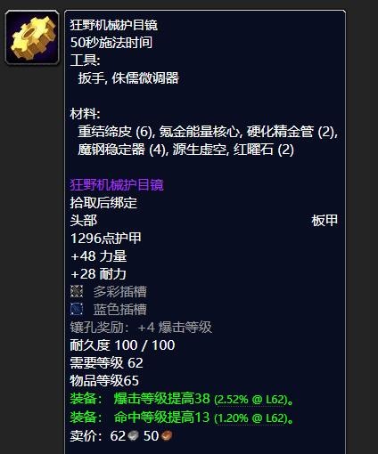 《魔兽世界》狂野机械护目镜需要什么材料