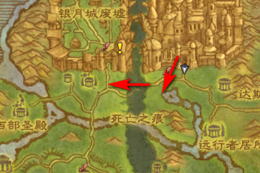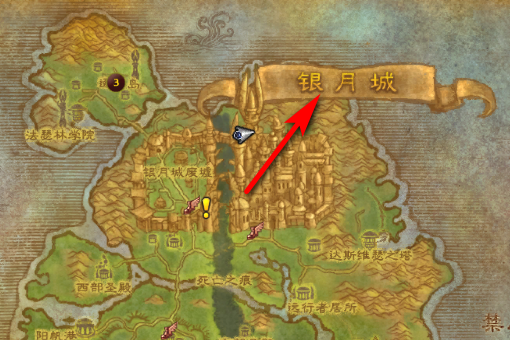 来到银月城,接着需要从银月城出去,出去之后沿着路径向西走,一直走到看到建筑,还是比较好找到的一个地点,这里有前期的基本升级任务。