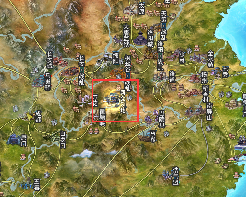 三、加载完成之后进入世界地图,在正中间有个输入框,输入帮会领地。