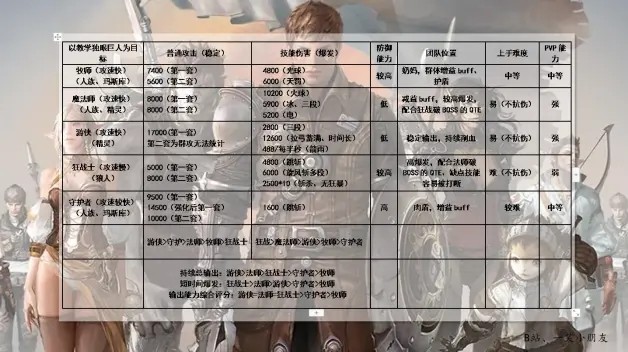 持续总输出:游侠>法师>狂战士>守护者>牧师