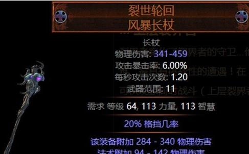 目前《流放之路》已经放出其中一个暗金装备——裂世轮回 风暴长杖。