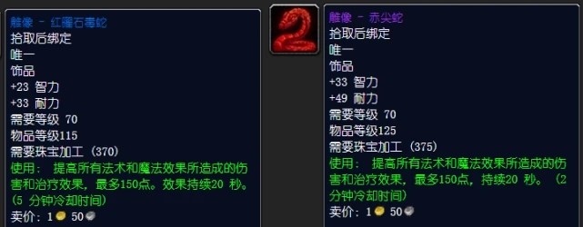 另外,珠宝加工可以制作专属饰品,不过这些饰品基本上也是属于追赶机制,都比不上当前版本的BIS。不过智力流的奶骑也可以考虑使用珠宝饰品,前期和后期两个饰品都很不错。