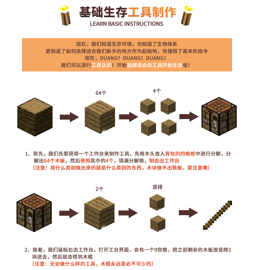 众所周知,我的世界是一款非常自由的沙盒游戏,但是起步阶段,玩家则需要一些生存工具才能存活下去,需要工具采集基础原料,那么这些原料如何制作呢,就跟着小编一起来看看吧!