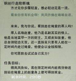 这里有个小技巧,直接旁边跳下去摔死,就不用走钢丝了,然后去交任务就好了。