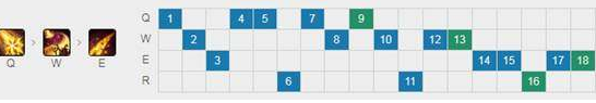 在去年W技能伤害砍了一半后,乐芙兰现在不再主W技能,而是改为主Q技能,Q技能可以将对被恶意魔印标记的目标进行弹射。而W技能则是可以一次性标记众多小兵,让Q技能的弹射可以发挥到极致,因此选择副W技能。E技能对线期间通常只有消耗时才用,前期一段伤害较低,不适合用来补刀,加一级就足够了。