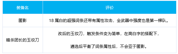 这十套推荐为爆发套的选择,未特殊提及部位的皆为穿戴全套套装。武器黑鸦遴选词条不推荐为觉醒等级词条。影舞者并非CDR职业,而且和歧路的相性不能达到极佳,所以装备选择并不往CDR上追求。另外,在没有融合希洛克装备和遴选最佳词条前2把武器的选择差距并不大,但在4个最佳的遴选词条和残香下匿影会小小强于另一把武器玉妆刀。
