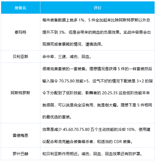 伤害最大化首选阿斯特罗斯,其中尽量避开3+2或者4+1的情况。追求技能冷却可以选择雷德梅恩,而罗什巴赫和贝利亚斯则为生存装。