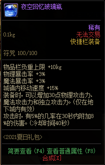 DNF2021夏日礼包中推出了新的纹章,这次的纹章属性非常好,不但有白字的加成,还增加了暴击率,那么DNF夜空回忆玻璃瓶属性是什么?下面就给大家带来DNF夜空回忆玻璃瓶属性介绍