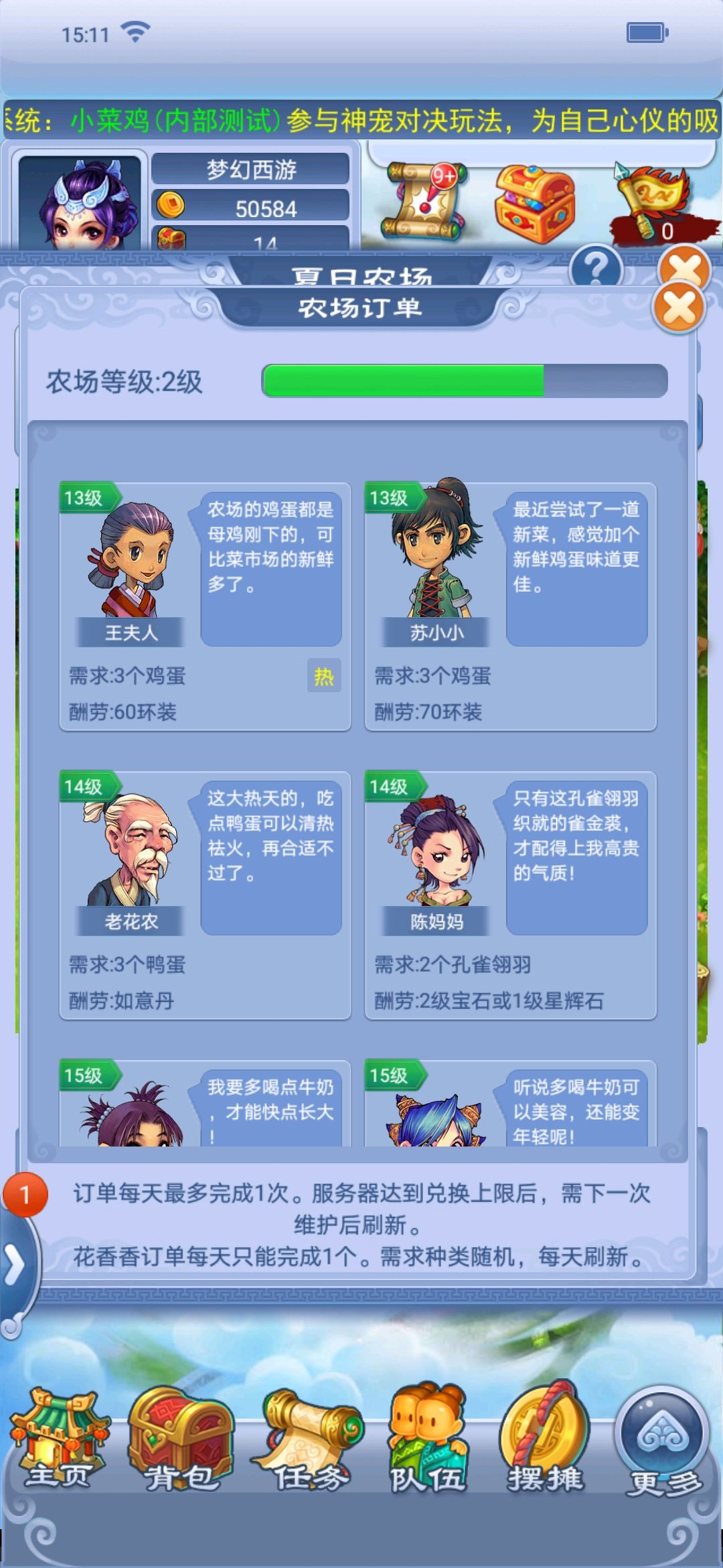 2、订单可完成次数有限,每周会刷新可完成次数。花香香订单为特殊订单,每天只能完成1个。需要的农产品种类随机,每天刷新。